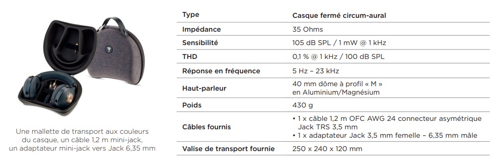 Côté design, ses coussinets, son arceau et ses oreillettes intègrent une finition en cuir semi-aniline Navy Blue. Ses détails en Soft Copper (grille haut-parleur, connecteurs du câble, rings…) lui apportent une touche raffinée. Emportez-le partout avec vous grâce à sa mallette de transport rigide, elle aussi aux couleurs Navy Blue et Soft Copper.