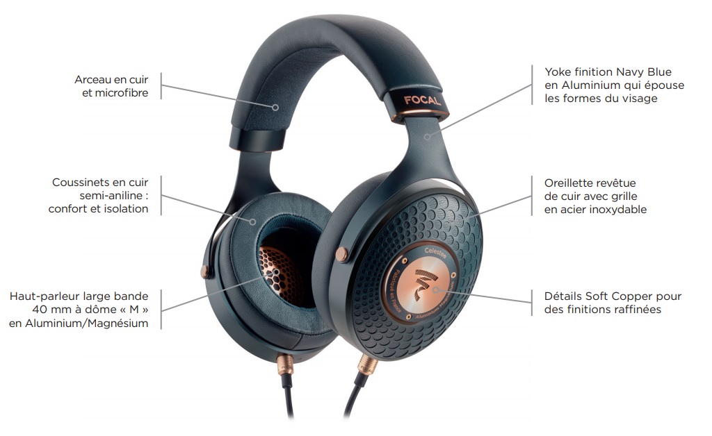Casque haut de gamme, Celestee combine design élégant et performances sonores remarquables. Il intègre les dernières technologies Focal : haut-parleurs large bande à dôme « M » en Aluminium/Magnésium de 40 mm et traitement acoustique à l’intérieur des oreillettes pour éviter les résonances. Celestee se distingue par son équilibre tonal : une belle extension dans le grave et des aigus et haut-mediums précis qui séduiront tous les amoureux de musique.